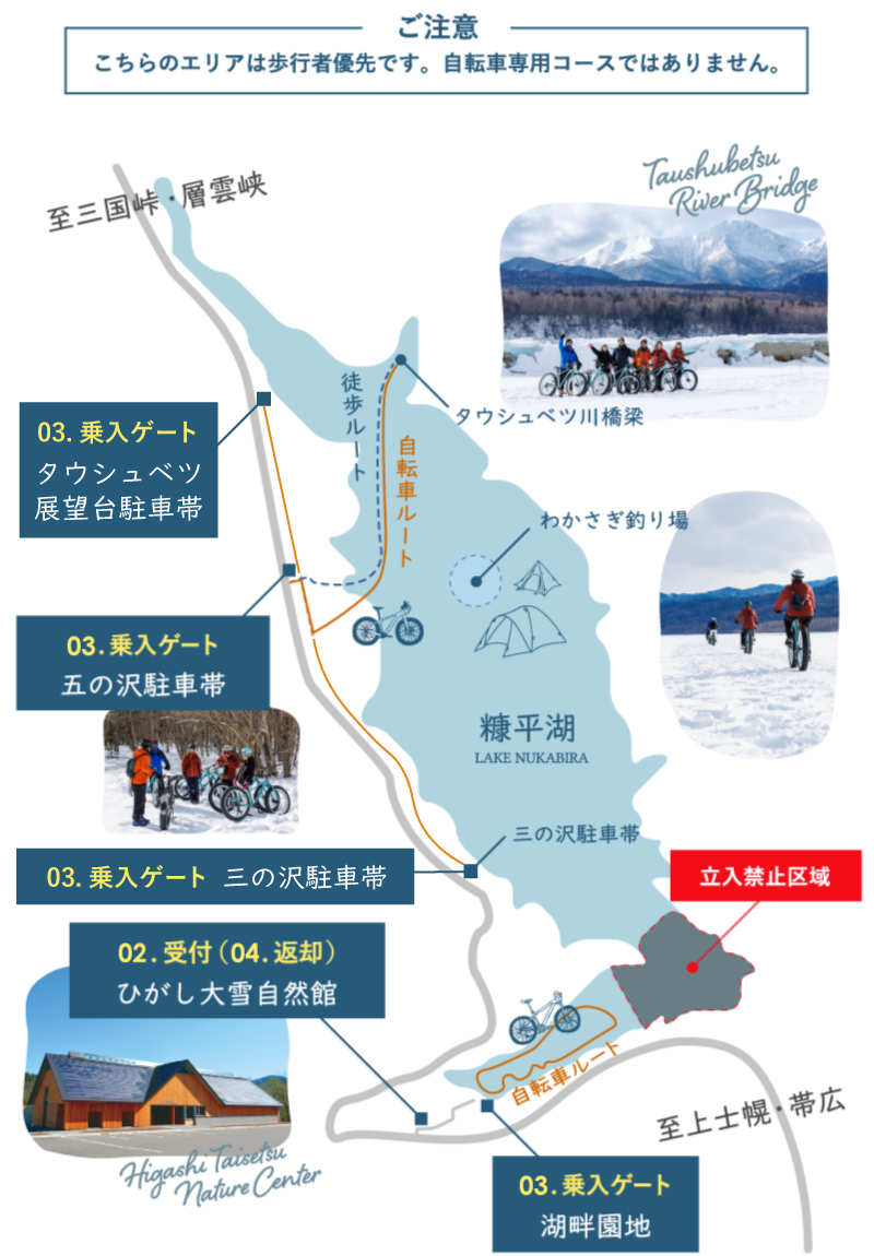 ひがし大雪自然館の休館日はコース点検のため自転車の乗り入れはできません。