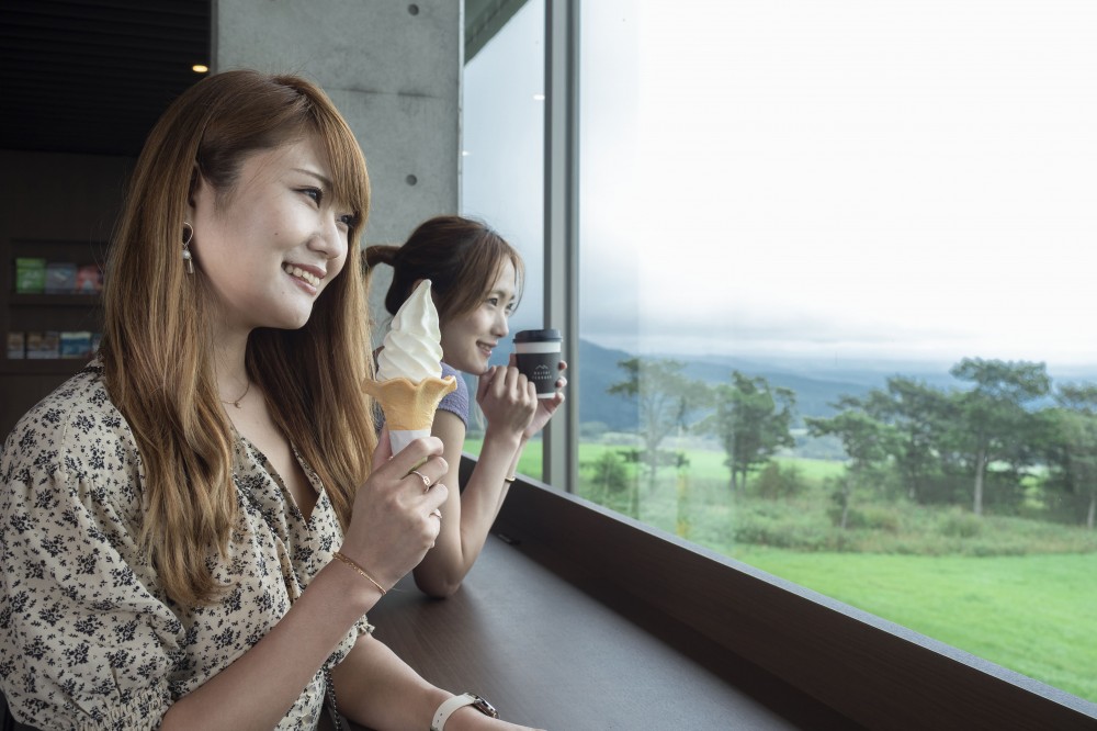 広大な景色と食を楽しむ。標高約800m、牧場の頂上付近に建てられたナイタイテラスに隣接している展望台からは十勝平野を一望でき、晴れた日には阿寒の山並みも望むことができます。また、地元食材を使ったさまざまなグルメを楽しめ、地元の特産品のお土産も手に入れることができます。