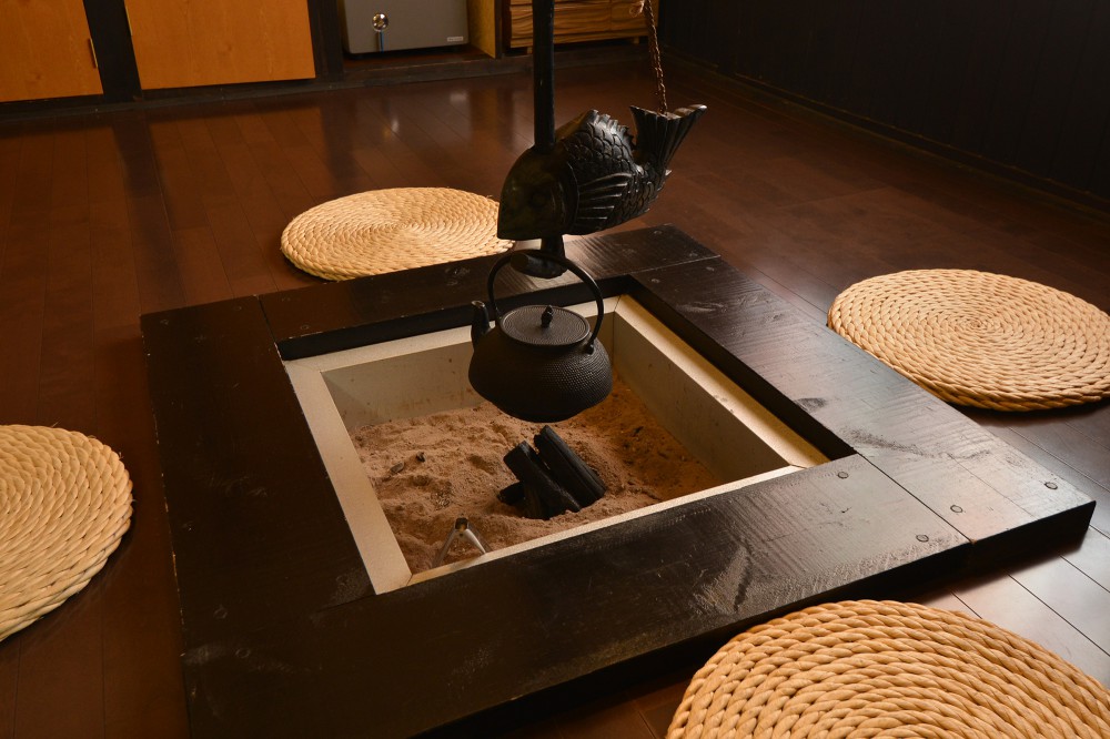 地元産の農産物や山菜をふんだんに使ったお料理を囲炉裏で召し上がっていただきます。囲炉裏で炙ったヤマメや、鹿肉の囲炉裏焼き、各種山菜など普段なかなか食べることができない逸品です。囲炉裏の火を見ながらのんびり寛げるでしょう。
