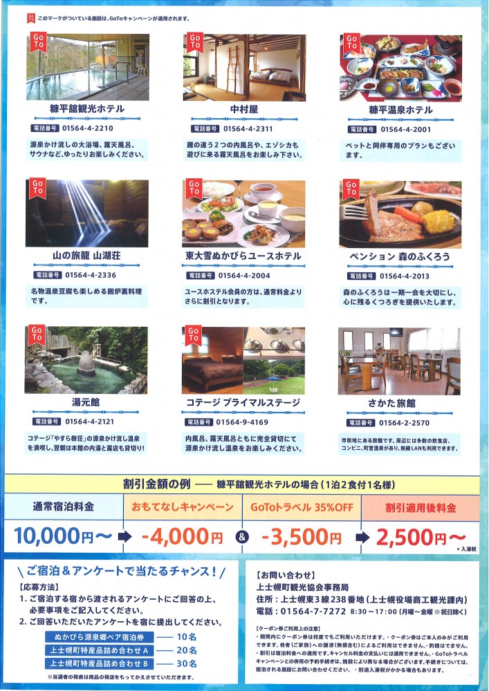 なお、Go To キャンペーン、上士幌町民限定5,000円割引は引き続きご利用可能です!