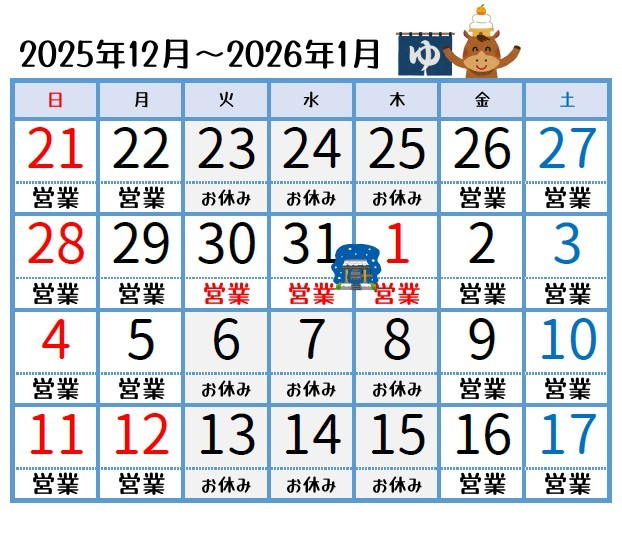 2025年も残すところあとわずかですね。 年末年始は日帰り入浴を休まず営業いたします♨️ 湯元館で「温泉納め」「温泉初め」しませんか? お待ちしております!