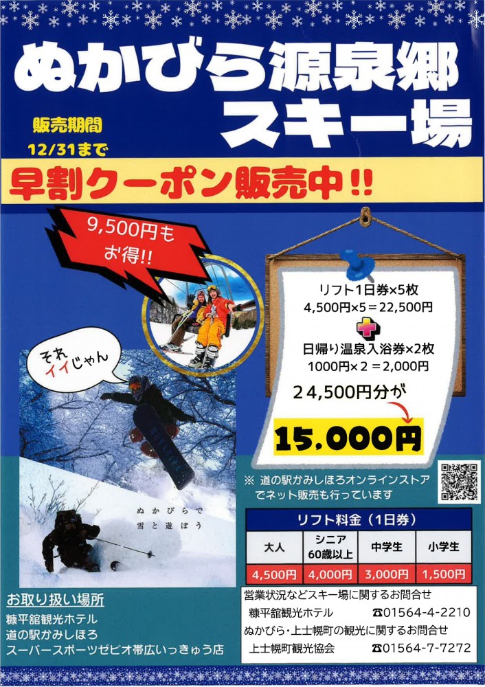 今年も大変お得な「ぬかびら源泉郷スキー場」の早割クーポン販売中です!